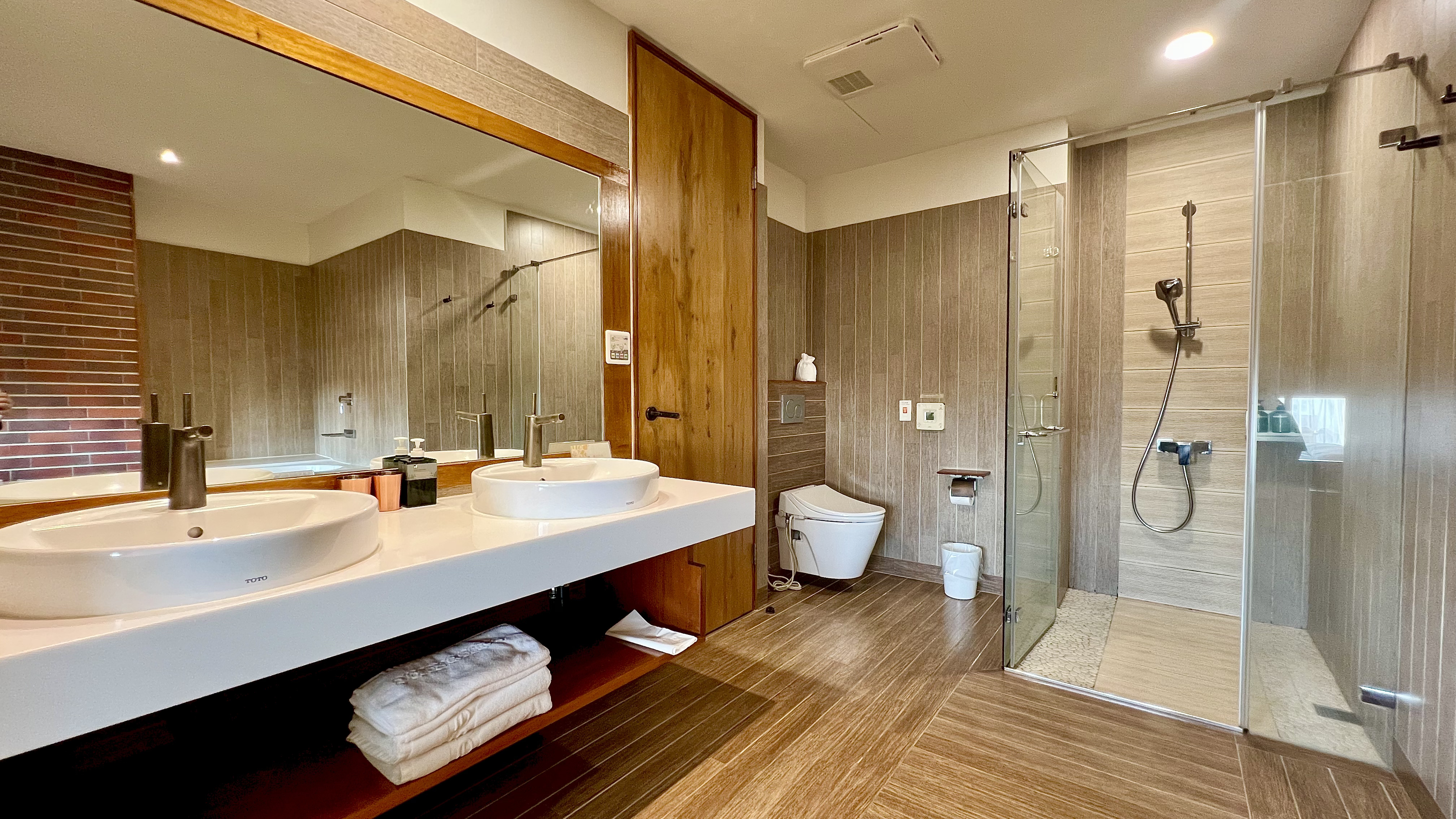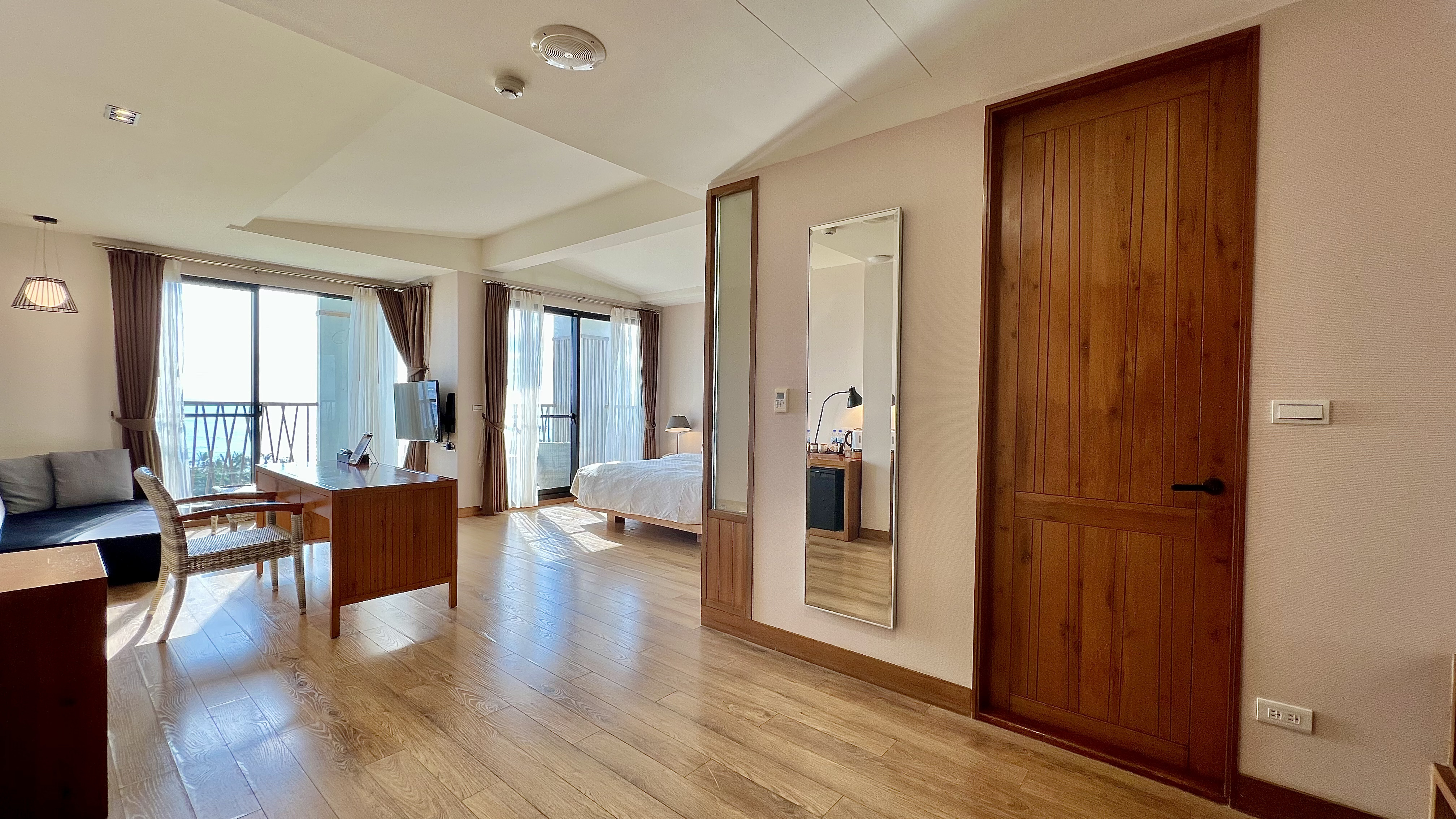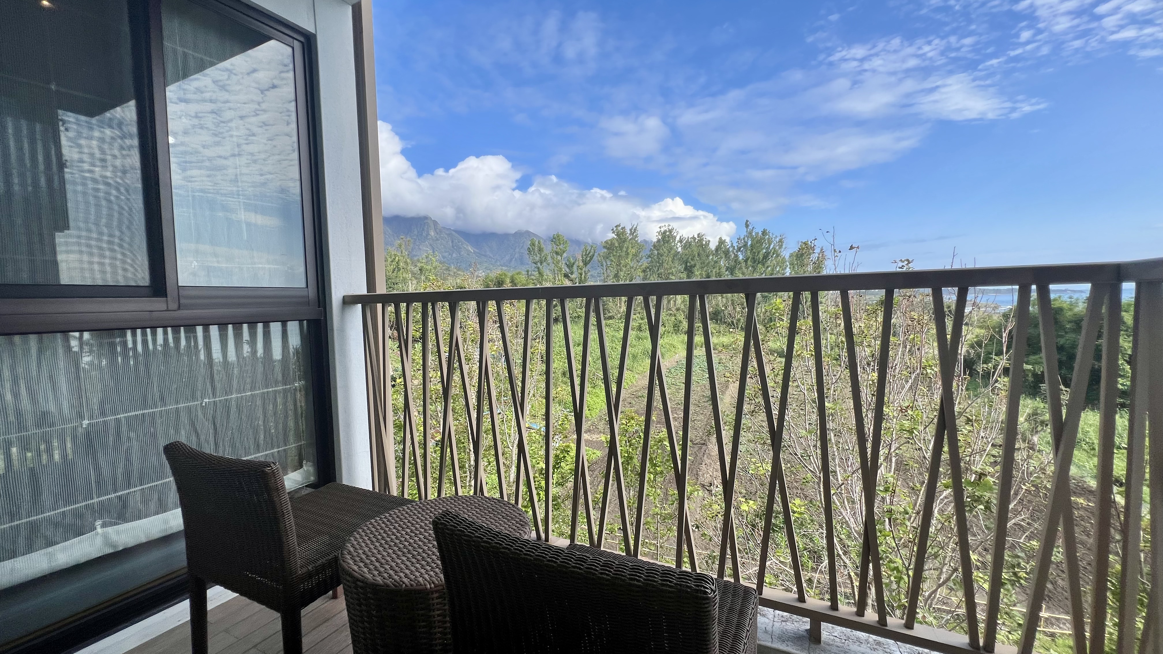 每一間都有專屬陽台,可以欣賞山海交織的景色。三間房各自有不同的樣貌: