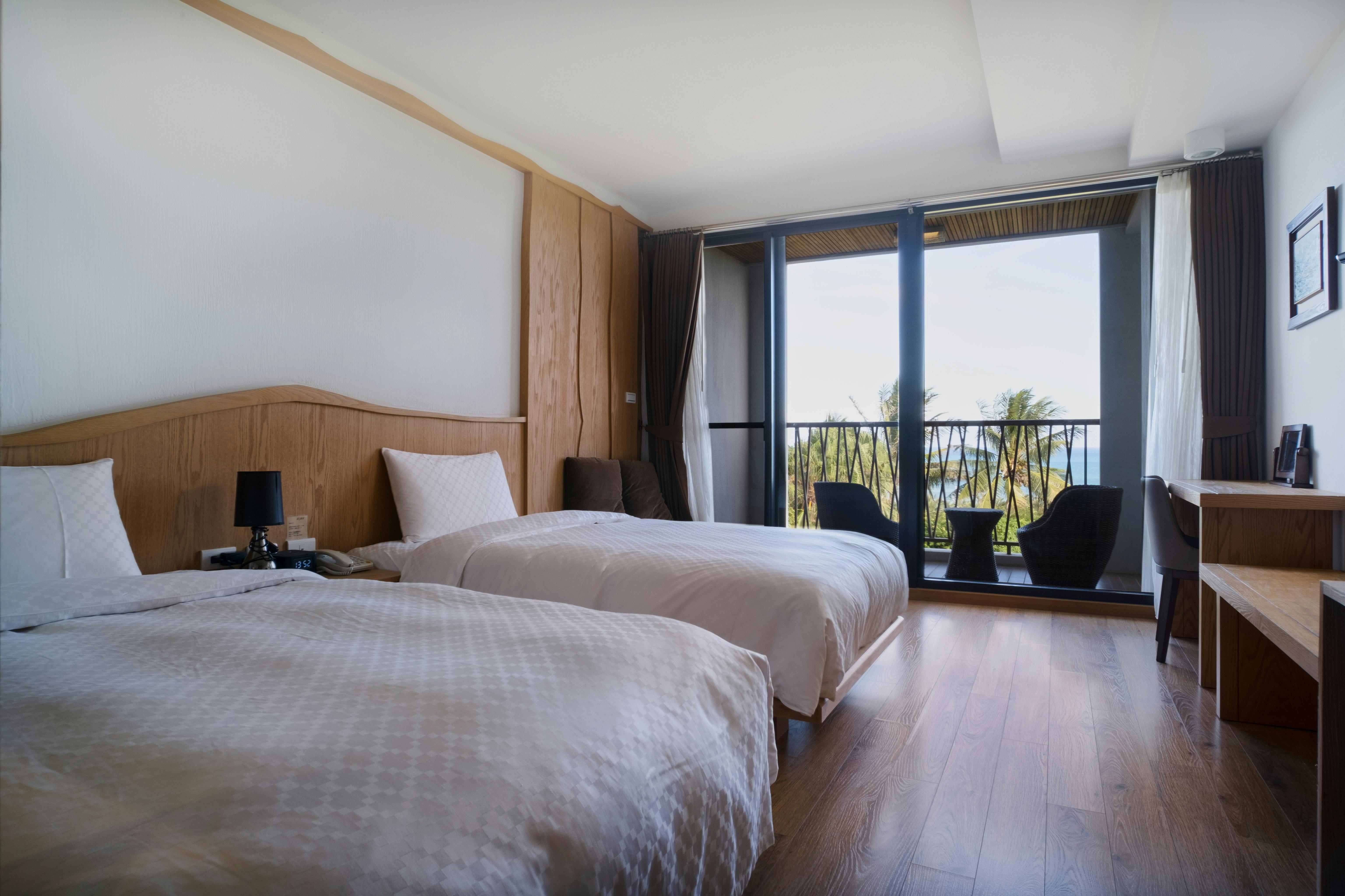 透過窗景欣賞海岸風光,感受海風帶來的寧靜氛圍。房內設有兩張單人床,適合好友或家人同行享受悠閒時光。
